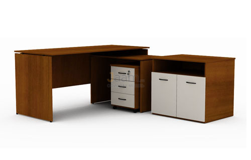 Рабочее место менеджера №2552 - столешница: лдсп 22 мм, кромка: пвх 2 мм, стекло: тонированное.